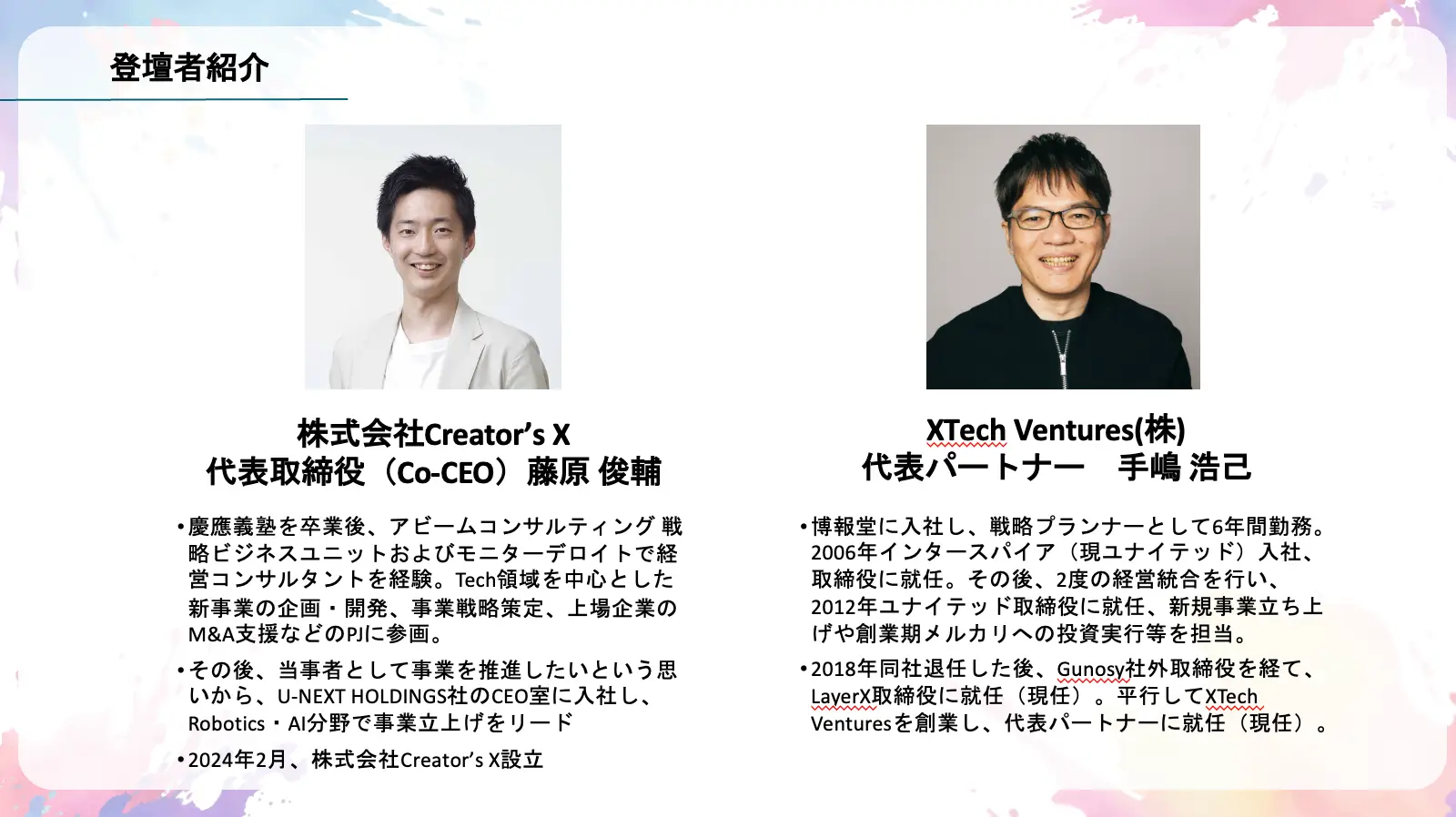本イベントでは、XTech Venturesがモデレーターとなり、アニメ制作領域でM&A・PMIを実行し、事業成長を遂げているCreator’s Xとともに、その意思決定と実践のリアルを紐解きます。
