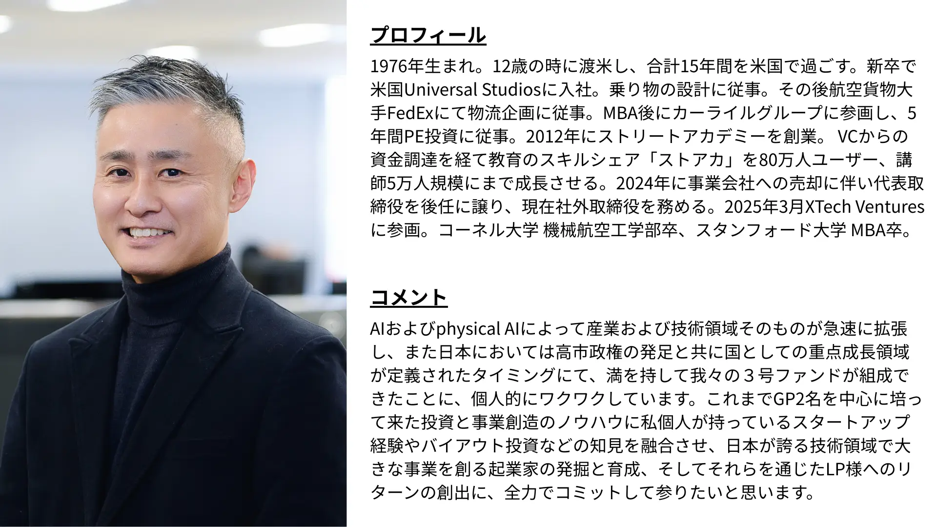 ▪️起業・事業経営・投資経験を有するパートナー陣の紹介と3号組成完了にあたってのコメント